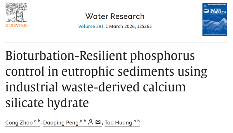 第一作者:赵聪 博士研究生(西南交通大学)通讯作者:彭道平 副研究员(西南交通大学)论文DOI: 10.1016/j.watres.2025.125265图文摘要成果简介近日,西南交通大学彭道平、黄涛老师等合作在Water Research上发表了题为“Bioturbation-Resilient Phosphorus Control in Eutrophic Sediments Using Industrial Waste-Derived Calcium Silicate Hydrate”的研究成果 (DOI: 10.1016/j.watres.2025.125265),报道了一种基于工业固废的高效沉积物控磷新材料—...
