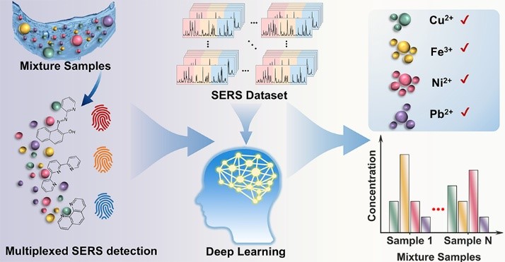 在涉及金属离子的突发水环境事件中,多种金属离子常同时存在并相互干扰,叠加毒性与快速扩散对监测的时效与准确性提出更高要求。包子漫画 硕士研究生李樊同学在《Environmental Science & Technology》发表论文“AI-Enhanced SERS with Probe Combinations for Concurrent Identification and Quantification of Coexisting Metal Ions in Water”,通讯作者为龚正君教授和范美坤教授。本文提出“探针组合 + AI 解码”的 SERS 体系:在 PAN、...
