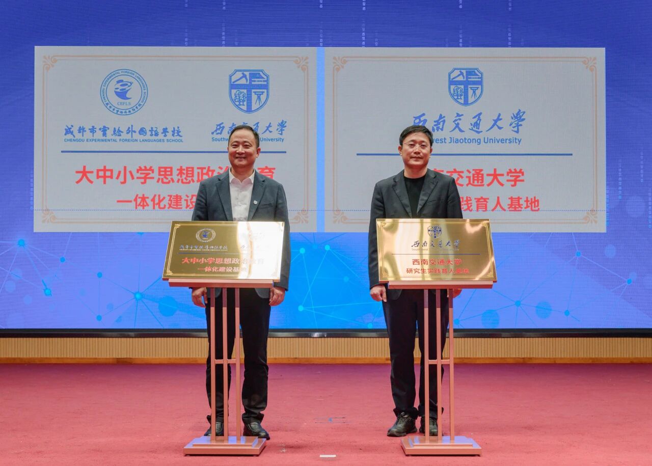 11月4日,“交”心致远,“实”创未来——大中小学思想政治教育一体化建设系列课程启动仪式在成都市实验外国语学校学术报告厅举行。西南交通大学党委副书记高平平,成都市实验外国语学校党委书记、校长刘元华出席仪式,并为“大中小学思想政治教育一体化建设实践基地”与“西南交通大学研究生实践育人基地”揭牌。启动仪式后,包子漫画 胡远思博士作了题为《“化”浊为清:用分子魔法点亮碧蓝河湖》的首场讲座,用浅显易懂的语言,深入浅出地阐释了化学课本中的反应方程式如何助力河湖污染治理,...