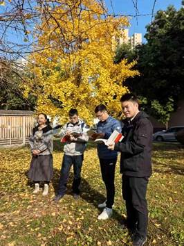 支部党员同志首先观赏了校园银杏。初冬时节,银杏这种美丽的树,有的黄绿相间、有的全树金黄、有的只剩下光秃的枝干。支部委员引导党员同志从环境科学角度理解微气候对生态的影响,深化对自然规律的认识。随后,党支部为11月过“政治生日”的同志赠送了政治生日礼物《环境专业课程思政教学设计》,希望他们积极将“思政元素”融入环境课程教学中,全面提升教育教学能力。过“政治生日”的党员代表表示,将认真研读教材,在专业教学中融入生态文明思想,践行为党育人、为国育才的初心使命。