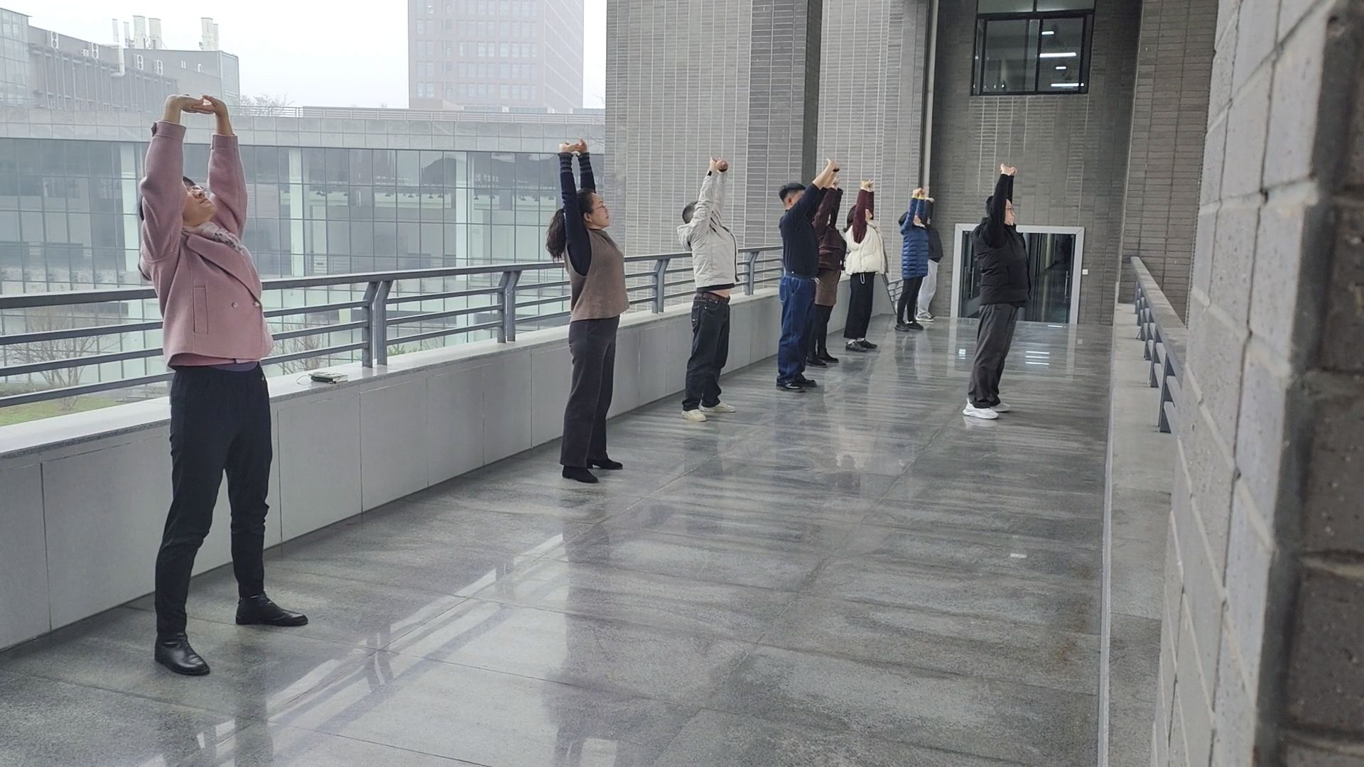 工间一小会,健身又暖心。活动开展以来,得到了学院教职工的积极响应和热情参与。每天上午十点四十分至十一点期间,伴随着悠扬的音乐,老师们纷纷走出办公室,在学院楼前长廊处整齐列队,跟随教练的示范,认真练习工间操。大家纷纷表示,工间操活动不仅锻炼了身体,放松了心情,还增进了同事间的交流,营造了积极向上的工作氛围。