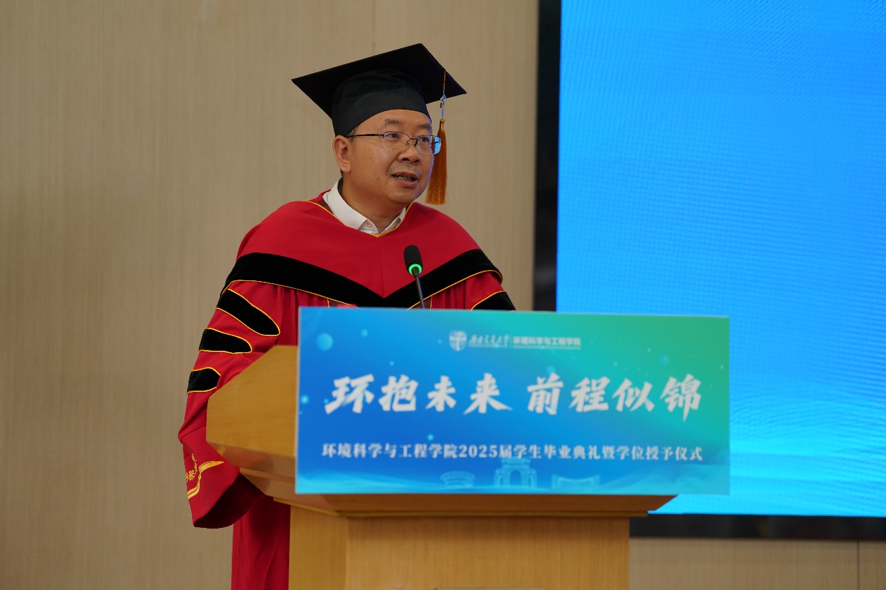 2025届学生毕业典礼暨学位授予仪式圆满落下帷幕。愿全体毕业生携着学院和师长的祝福,践行环保初心,守护河山、不负韶华;永葆探索热忱,无畏风雨、砥砺前行。
