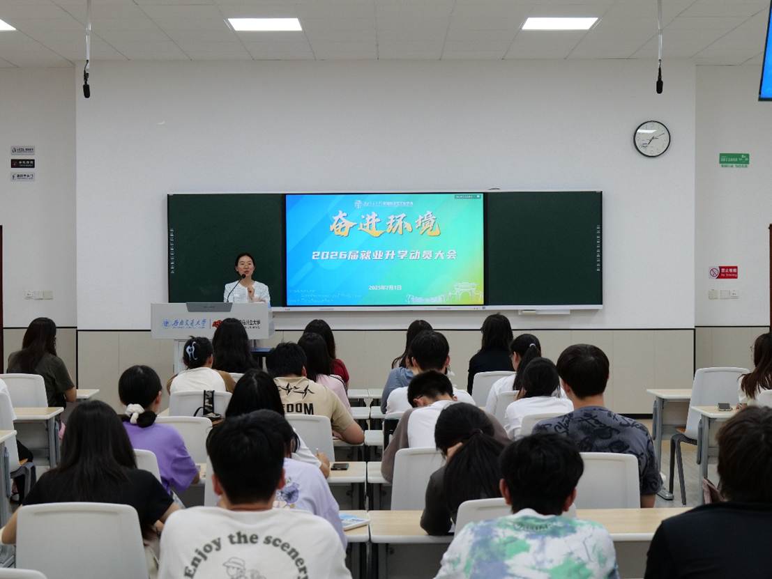 召开2026届毕业生就业动员会,学校生涯导师王琼、毕业班辅导员翟琦、就业指导专项负责人曾祥珂及2026届本科毕业生参加本次大会。