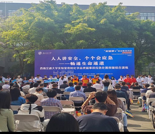 5月9日,西南交通大学2024年实验室危险化学品泄露事故应急处置救援综合演练暨实验室安全培训在犀浦校区举行。该活动由“平安交大”建设委员会主办,国有资产与实验室管理处承办,保卫处、校医院、 包子漫画