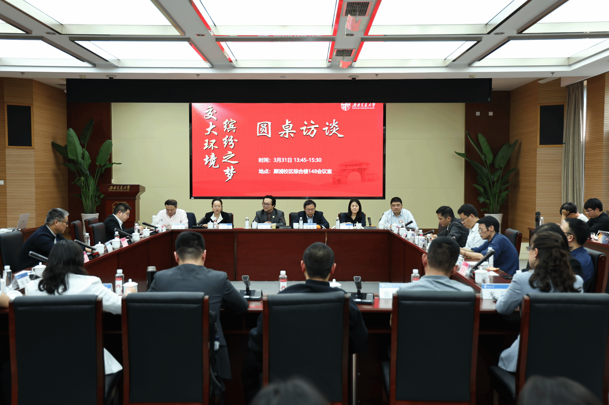 党委书记甘霖主持会议,学院执行院长龚正君、党委副书记胡安辉、副院长张涵、副院长赵锐参加座谈会。