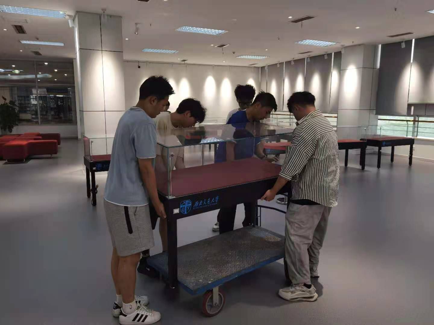 在志愿活动开始前,指导老师对志愿者们进行了详细的分组和任务分配。第一组志愿者负责展柜的搬运和展品的摆放工作。他们齐心协力,将沉重的展柜一一搬运到指定位置,并按照要求认真摆放各件展品。他们精益求精的工作态度确保了展柜的整体美观和信息的清晰展示,为参观者提供了一个舒适、整洁的观展环境。