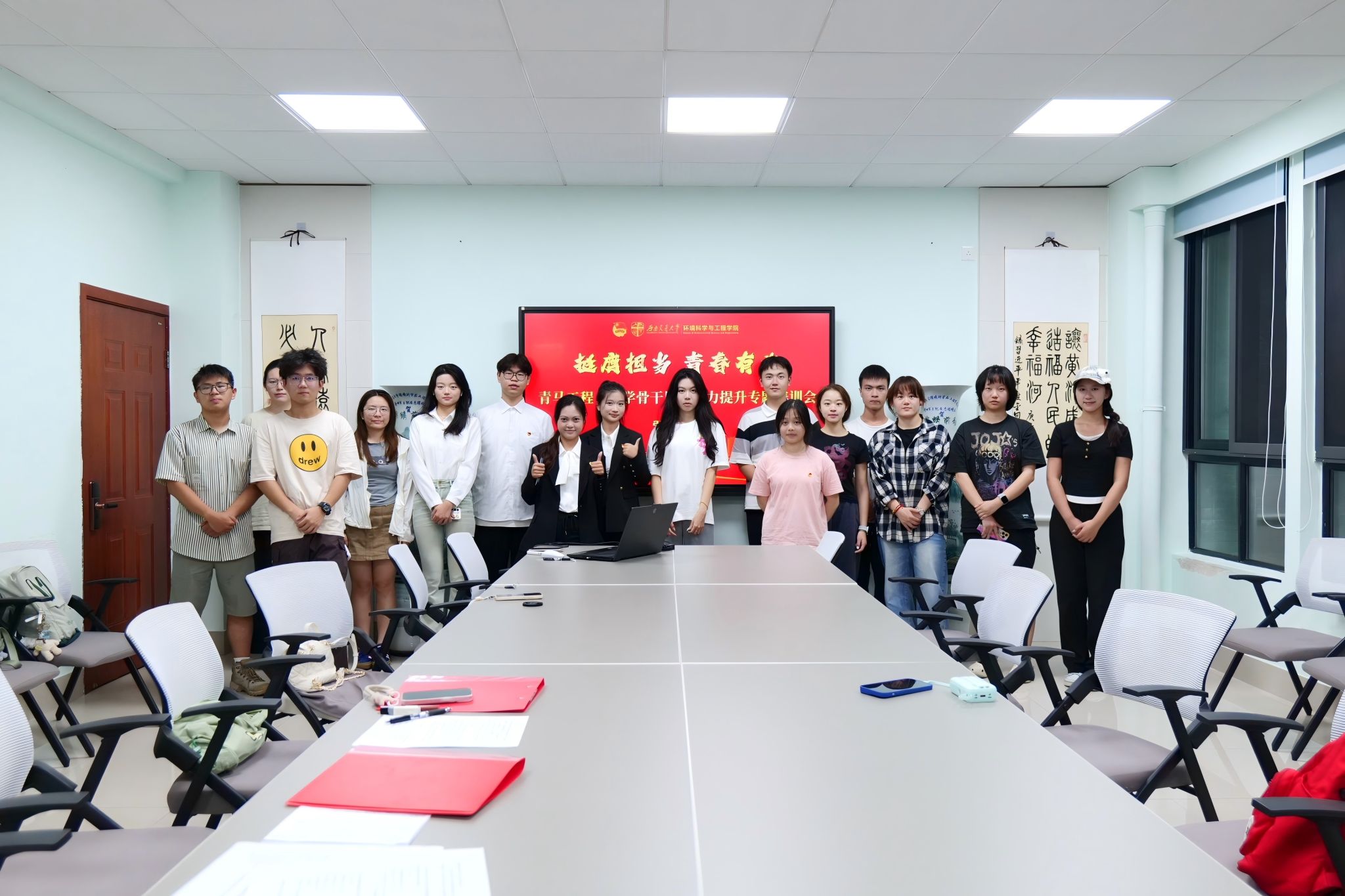 “青马工程”团学骨干工作交流暨履职能力提升专题培训会在X4348会议室召开。学院党委书记甘霖、团委书记翟琦,辅导员赵瑞涵、黄泳桦、曾祥珂及学院团学骨干、社团负责人参会,会议由赵瑞涵主持。