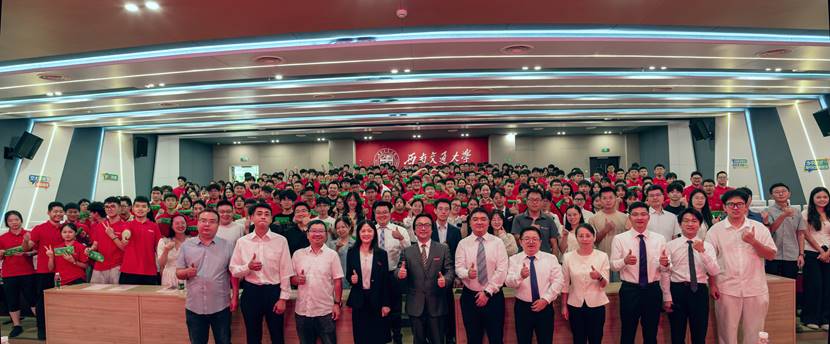 “环抱未来,境界同行”2025级新生开学典礼在犀浦校区图书馆一号报告厅顺利举行。学院党委书记甘霖,副院长张涵教授、赵锐教授,校友代表、四川四海安邦环保科技有限公司副总经理姜延雄,研究生教育教学专项主管范美坤教授,实验中心专项主管王东梅高级工程师,系主任苏凯老师、张军科老师,副系主任刘义青老师,教师代表熊尚超老师、刘颖老师、刘洋老师、郭文凯老师、陈斯恺老师、肖薇老师,李木老师等8位2025级班导师、王奕鸣等10位朋辈导师、全体辅导员老师,以及154名本科生、101名研究生新生和部分新生家长共同参加了典礼。典礼由学院党委副书记胡安辉主持。