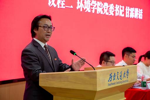 学院党委书记甘霖代表学院龚正君院长及全体师生致辞,向2025级新生致以热烈欢迎与诚挚祝贺。他勉励同学们心怀家国、勇担使命,将个人理想融入生态文明建设的伟大事业,以实际行动守护绿水青山。坚持以人为本、生态惠民,在专业学习中锤炼过硬本领,于攻坚克难中勇于创新,努力成长为堪当民族复兴大任的时代新人。甘书记的讲话深情而坚定,极大激发了全院师生投身环保事业、共建美丽中国的信心与决心。