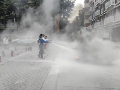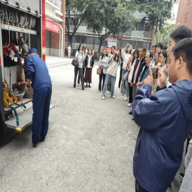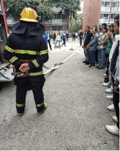 随后,成铁军老师主持了消防器材使用实操培训及消防实地演练活动。首先,郫都区消防中队的消防员们向同学们展示了灭火器和消防水枪的正确使用方法。在消防员们令人敬佩的职业素质和专业技能的示范下,同学们深刻理解了火灾的无情本质。同时,与会人员也获得了宝贵的实操机会,同学们亲自操作了灭火器和消防水枪。在使用灭火器扑灭大火的实践过程中,同学们不仅感受到了消防员们的辛勤付出,更深刻体会到了火灾现场的热浪逼人和大火的无情。这一系列体验,从心理和生理两个层面增强了同学们的消防安全意识,并为同学们面对和处理此类紧急情况积累了宝贵经验。