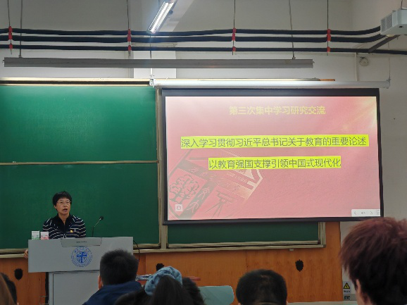 随后,教工第二党支部童圆君、曾卓、杨红薇等同志结合工作实际分享了学习心得。他们从教书育人、科研创新、社会服务等角度,阐述了如何将习近平总书记关于教育的重要论述贯彻落实到具体工作中。