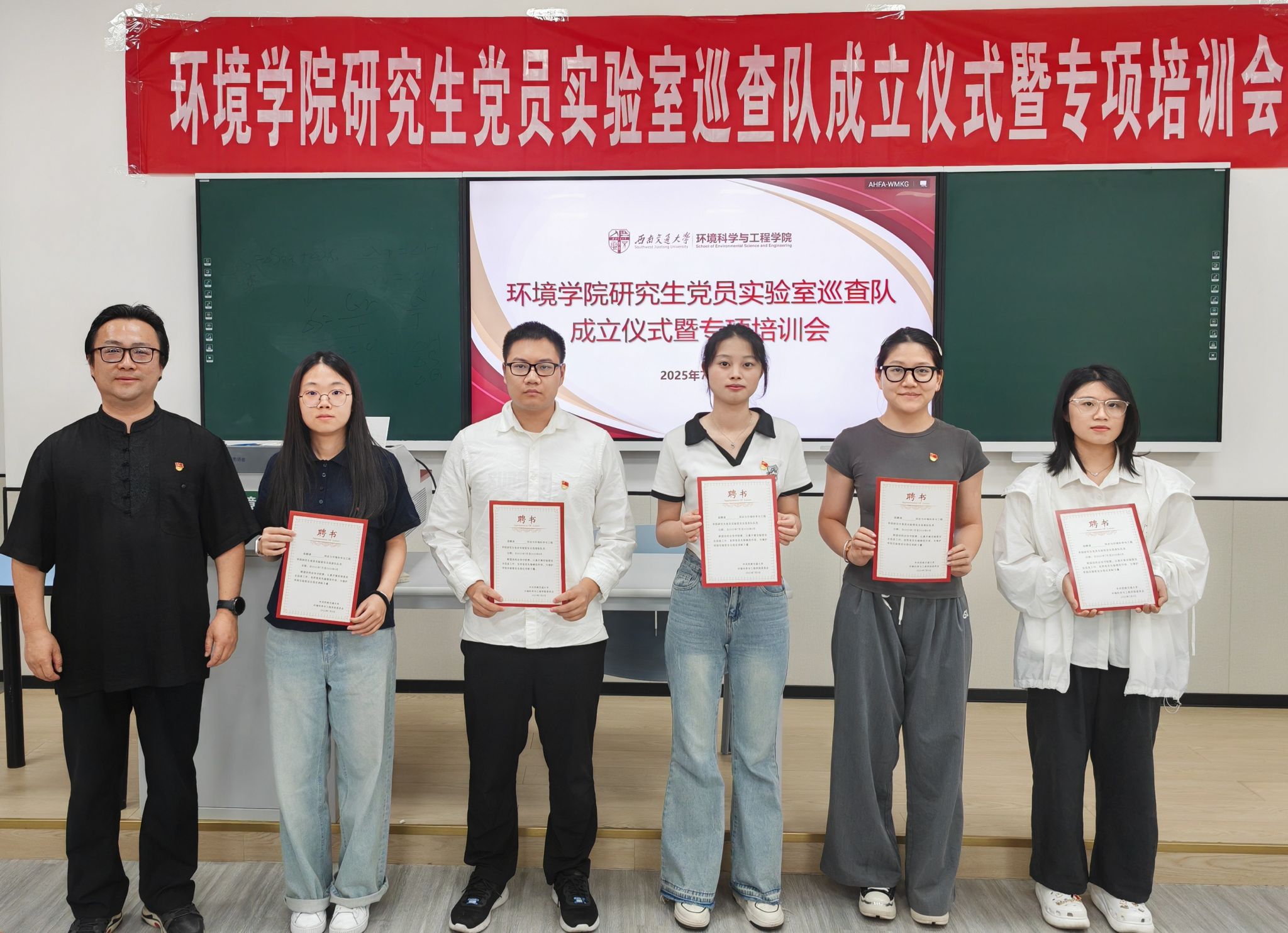 为充分发挥研究生党员在学院实验室安全管理工作中的先锋模范作用,筑牢实验室安全防线,202579日周三下午,包子漫画 研究生党员实验室安全巡查队成立仪式暨专项培训会在X4247举行,学院党委书记甘霖、学院团委书记翟琦、实验中心唐玥、辅导员黄泳桦以及巡查队全体成员参加。