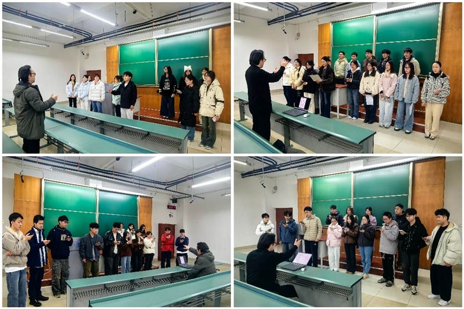 活动伊始,参与学生分为四组,各组选取一首红色诗词或歌曲进行排练。在二十分钟的练习过程中,同学们认真投入,细致揣摩作品内涵与情感表达。甘霖书记深入各组开展现场指导,围绕朗诵技巧、情感表现与节奏把握等方面给予专业指导。同学们在启发下逐步掌握表达要领,展现出积极的学习状态与良好的精神风貌。