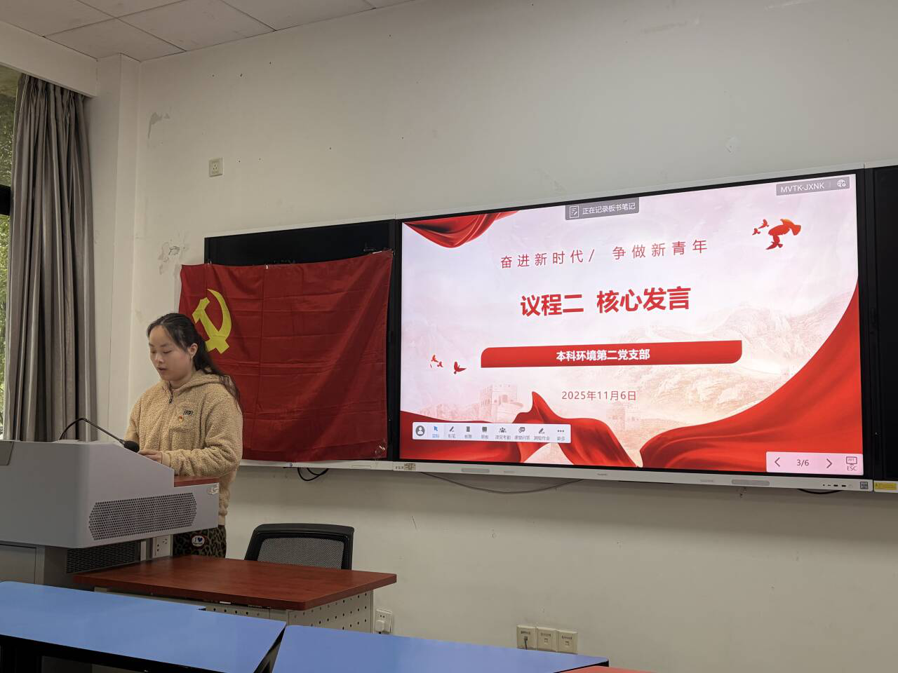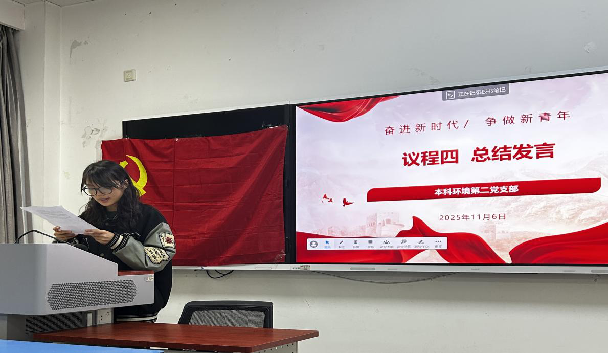 11月6日,本科环境第二党支部在X4131教室开展了11月主题党日活动,此次活动由党支部书记杜思怡主持。活动围绕部长怀进鹏视频课程“深入学习贯彻习近平总书记关于教育的重要论述 以教育强国支撑引领中国式现代化”。集中大课交流研讨。