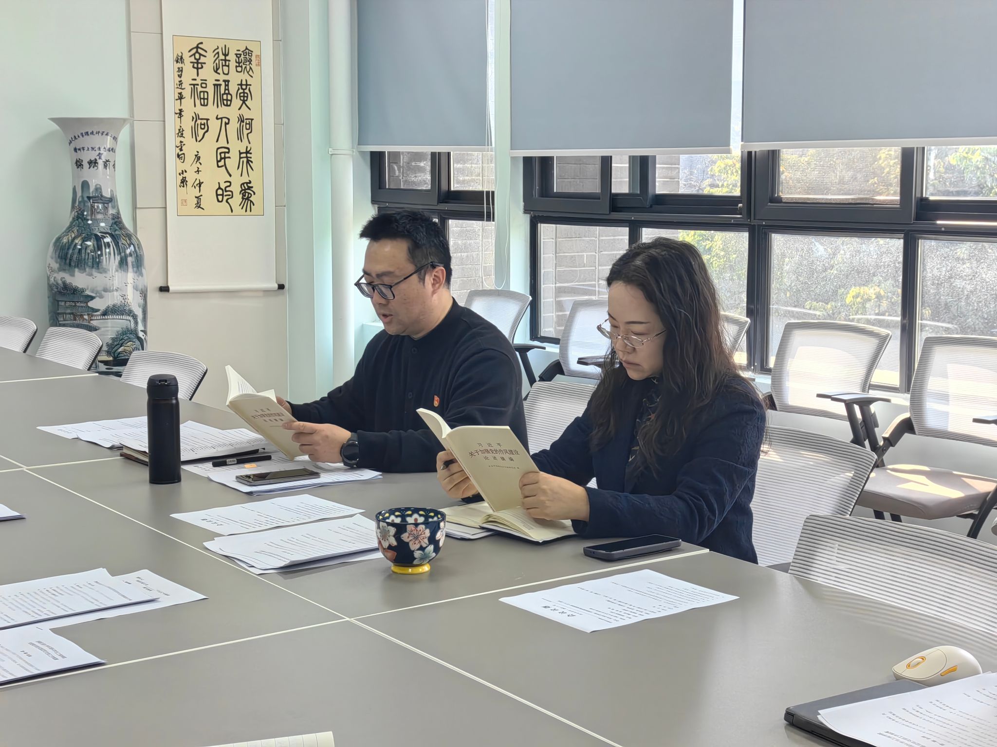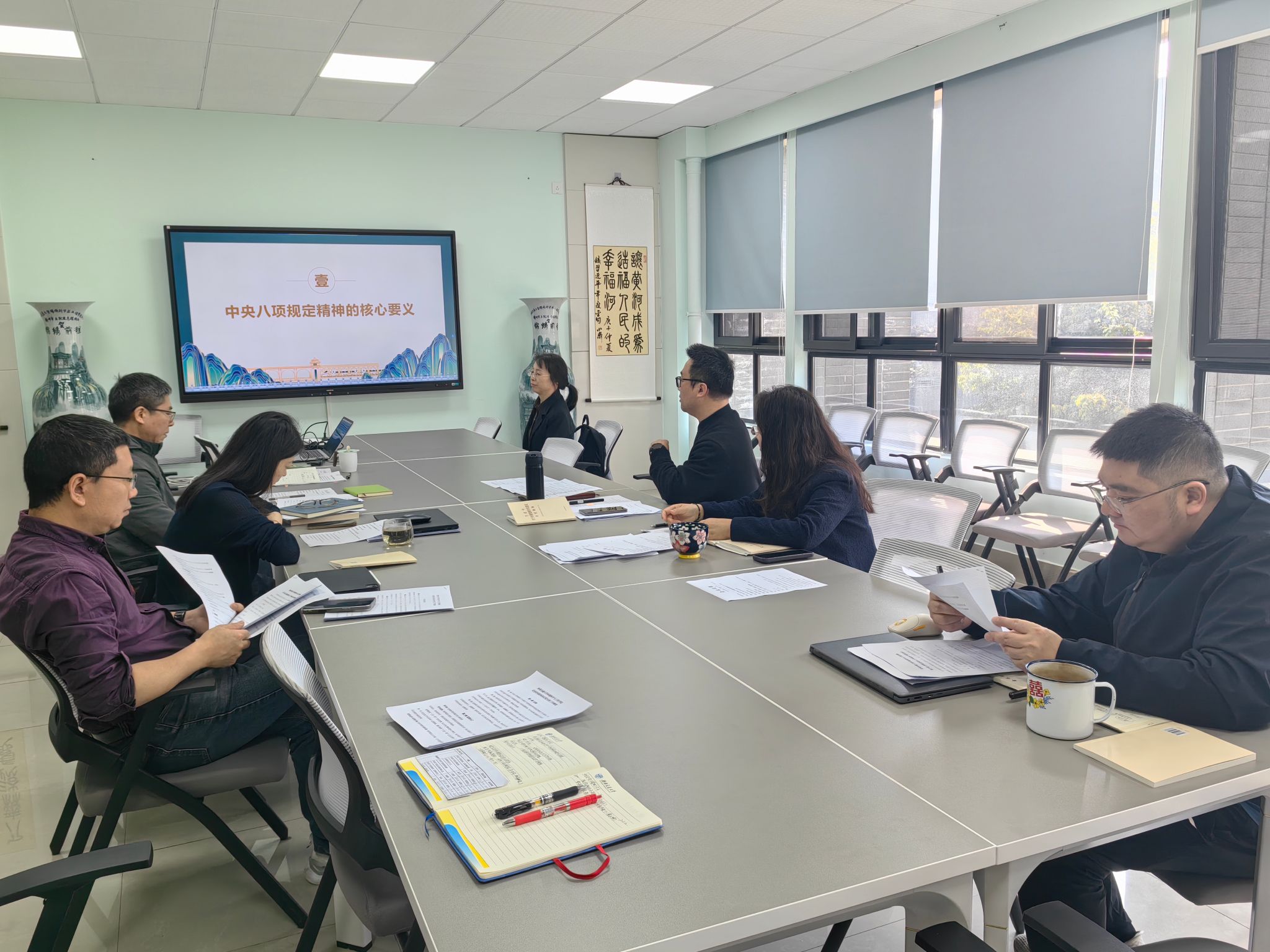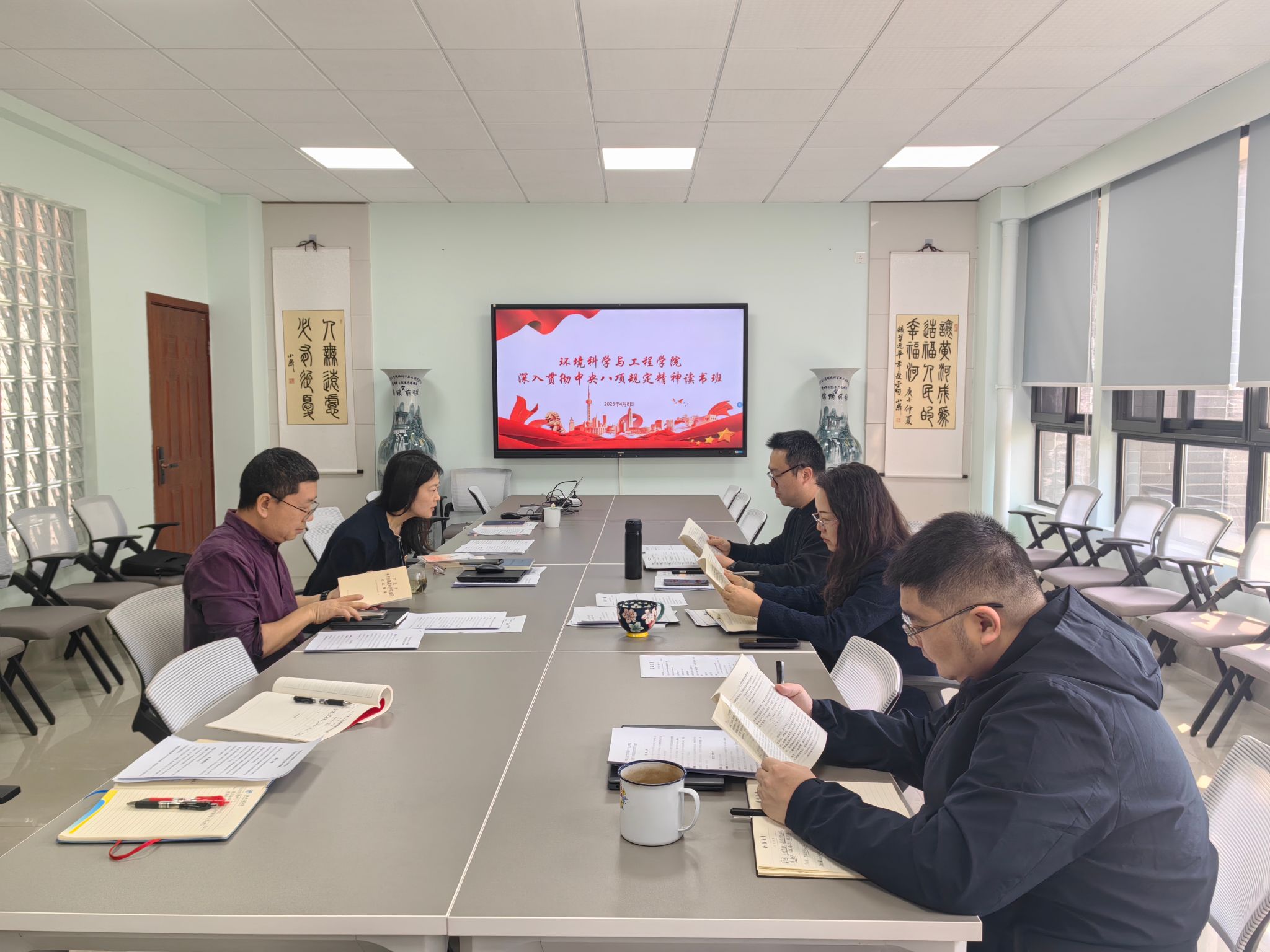 领导班子在X4348会议室举行深入贯彻中央八项规定精神学习教育读书班集体学习。学院党委书记甘霖主持学习活动,院长龚正君、副院长张涵、副院长赵锐,以及专项工作主管等同志参加。