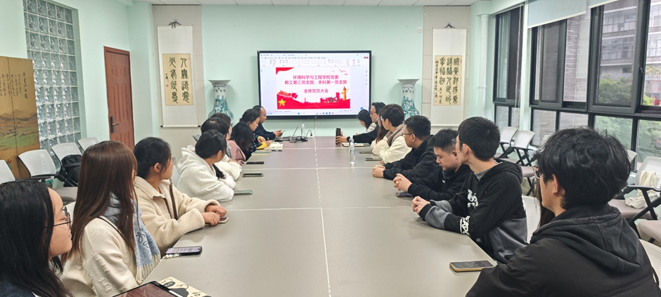 本科第一党支部周海华、张骏、王贝安三位同学作为学生党员代表发言。周海华结合专业实践谈到:“作为环境学子,我们应将课堂所学转化为解决实际问题的能力,为美丽中国建设贡献青春力量。”张骏从科研创新角度提出建议,王贝安则围绕学生党员的先进性分享了学习体会。随后,全体党员轮流发言,现场气氛热烈,形成“师生互促、教学相长”的良好氛围。