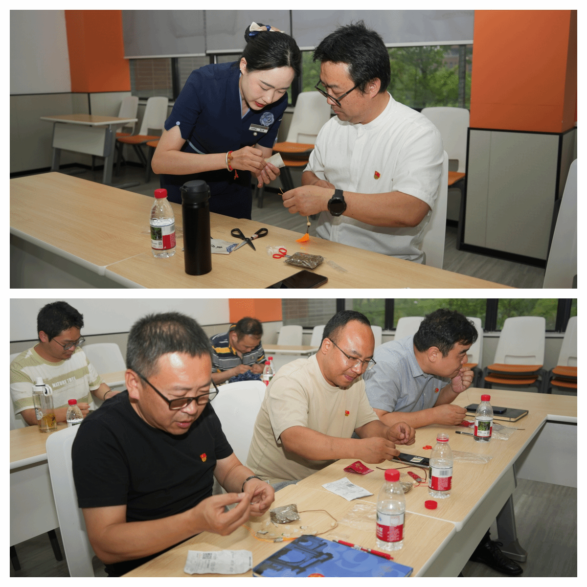 理论学习后,活动进入实践环节。在后勤工作人员指导下,党员同志们亲手制作端午香囊与漆扇。艾草填囊、针线缝制,一针一线间寄托着“正气驱邪”的美好寓意;调漆漂扇、勾勒纹样,一笔一画中彰显着“清廉守正”的价值追求。现场党员纷纷表示,将传统文化符号融入党纪教育和作风建设,既增添了节日仪式感,更让廉洁意识和党性教育入脑入心。