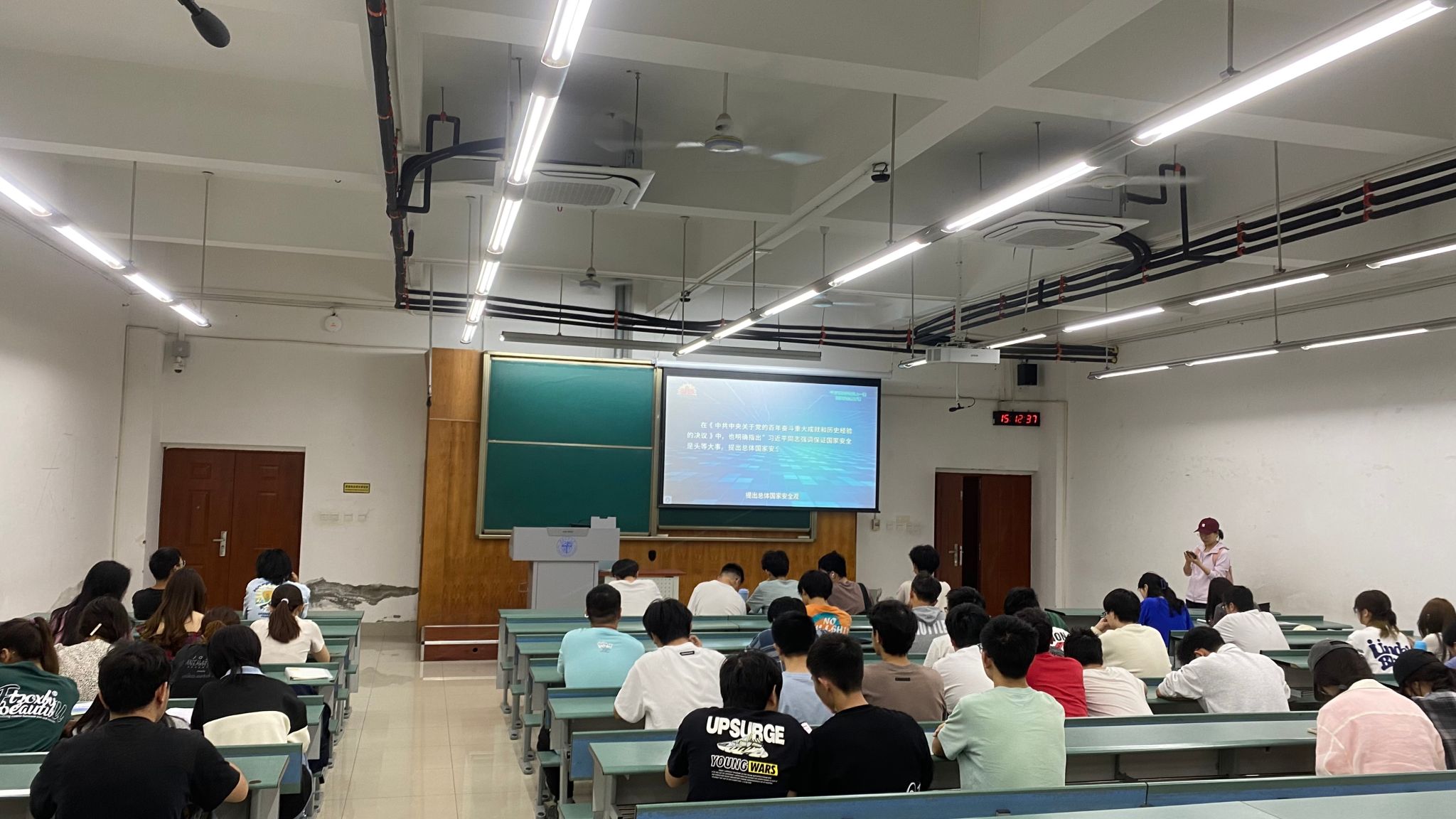 在九里校区、犀浦校区,以党支部、班级为单位,采用线上线下相结合的方式组织690余名本研学生共同观看“千万高校学生同上一堂国家安全教育课”。