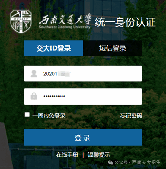 使用西南交通大学统一身份认证账号登录。登录后,自动跳转到“信息填报”。