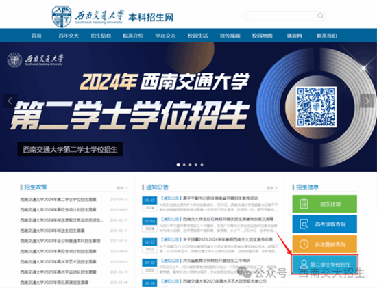 仔细阅读报名注意事项和《西南交通大学2024年第二学士学位招生简章》