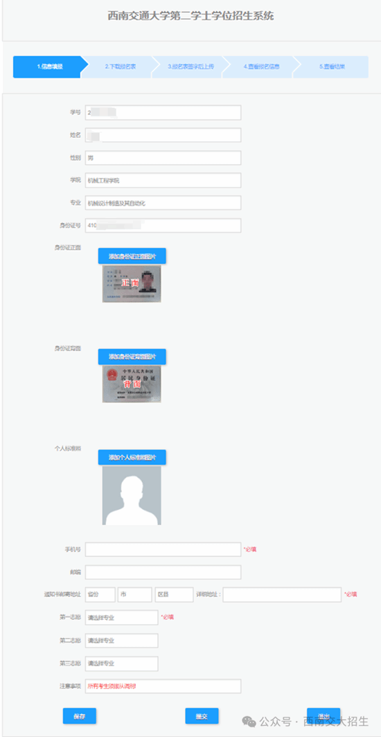 ③打印《西南交通大学2024年第二学士学位报名表》,签字后扫描回传至报名平台。
